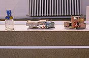 Manfred Pernice baut sowohl raumfüllende plastische Arbeiten als auch handgroße Modelle, die in der Regel aus zusammengefalteter und geklebter Pappe hergestellt sind. In beiden Fällen spielt der Künstler mit räumlichen, architektonischen Verhältnissen, die jedoch in ihrer Ambivalenz überraschen. Innen- und Außenbereiche, malerische und plastische Elemente, illusionistische und architektonische Momente lassen sich häufig nicht eindeutig als solche verstehen und erzeugen als Gegensätze widersprüchliche Wahrnehmungen von ein und demselben Kunstobjekt. So scheinen alle Arbeiten in einem Rohbaustadium zu sein und dennoch wirken sie schlüssig und vollkommen. In den Modellen von Pernice scheinen die Verhältnismäßigkeiten, die Proportionen und Dimensionen, aus dem Lot. Ausschnitte von Reklamebildern klebt oder druckt er in Originalgröße auf die vergleichsweise winzigen Wände seiner Modelle, getippte Texte haften Außenwänden wie altmodische Titelbeschriftungen an. Vertraut und fremdartig zugleich, wirken Pernices Kunstwerke wie poetische Metaphern für die Ungereimtheiten des modernen urbanen Lebens.