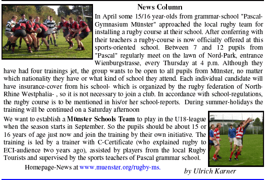 Impressum/Contact: Urich Karner, Rugby Tourists MS e.V., Postfach, 48026 Münster 0251-391 935, wlpub@uni-muenster.de