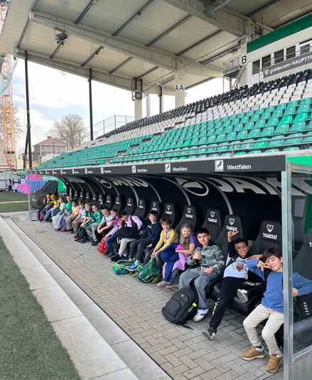 17 Kinder des Fußballrates waren letzte Woche zu Besuch im Preußenstadion. Dort haben sie einen Workshop zum Thema „Demokratie auf und neben den Platz“ mit zwei Sozialarbeitern vom Lernort Preußenstadion besucht. Neben einer gemeinsamen Besprechung im Vip Bereich des Preußenstadions standen teamorientierte Spiele auf dem Programm. Das große Highlight war zum Ende eine Stadionführung durch das neue Preußenstadion. Nach der Rückreise mit dem Bus wurde ein schöner und interessanter Tag mit einem gemeinsamen Mittagessen in der Eichendorffschule beendet.