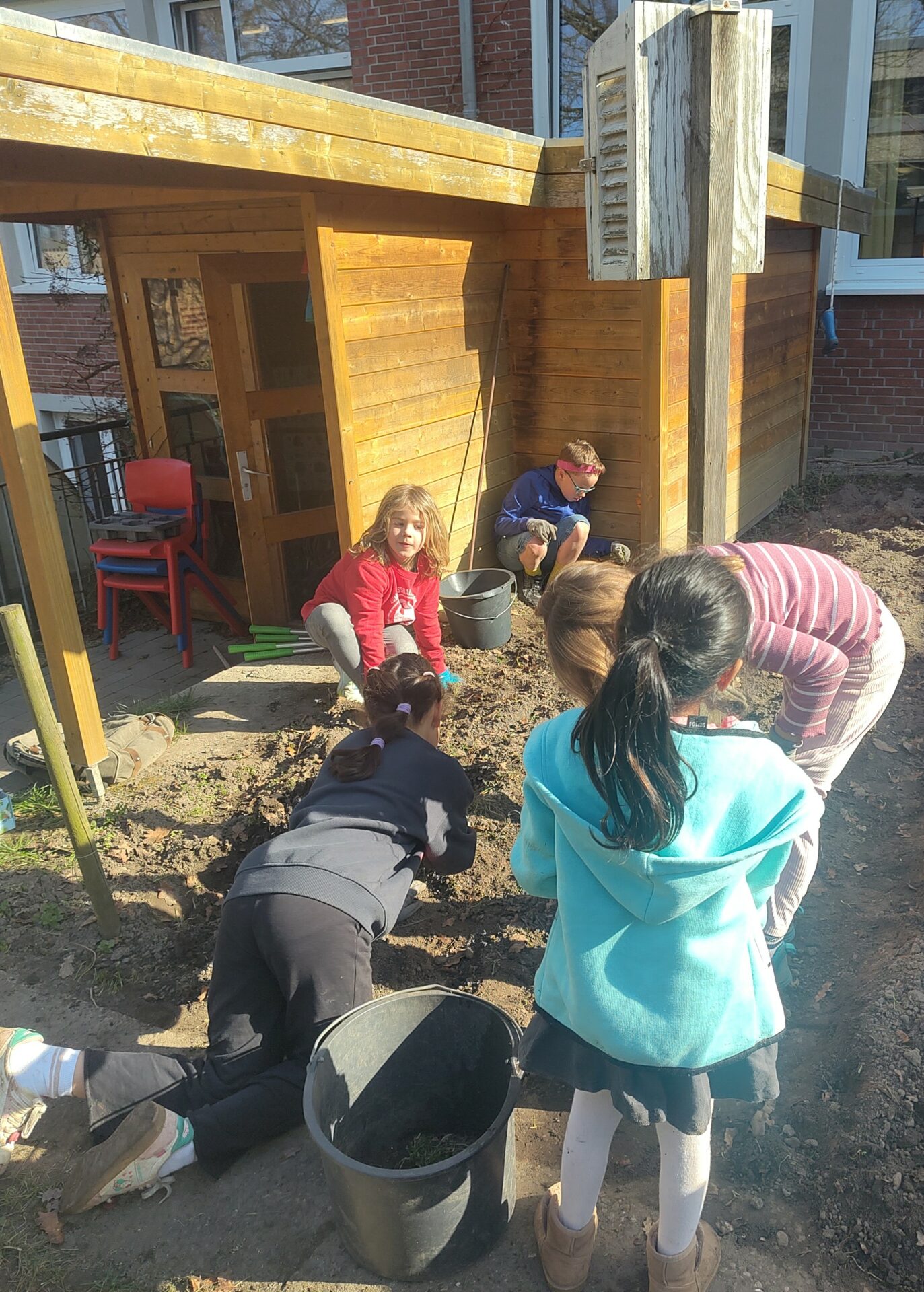 Gemeinsam mit Eltern der Schulgemeinschaft wurde der Schulgarten unter Anleitung von unserer Frau Liebig wieder fit für den Frühling gemacht. Kinder und Erwachsene hatten trotz des wechselhaften und durchwachsenen Wetters viel Spaß.