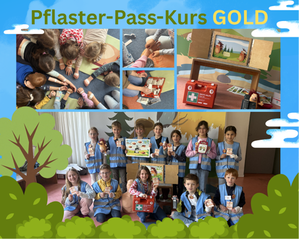 Ein besonderes Highlight erlebten unsere PausenhelferInnen am 16.04.2026. Mit einem Erste-Hilfe-Kurs fand ihre Ausbildung einen gelungenen Abschluss. Im Rahmen des Pflaster-Pass-Kurses in Gold konnten unsere Kinder ihr Wissen und ihre Fähigkeiten eindrucksvoll unter Beweis stellen.