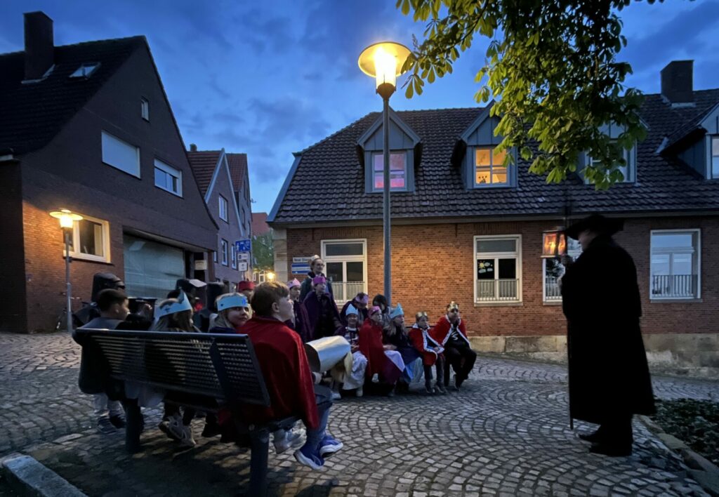 Mit viel Begeisterung tauchten die Kinder in die Welt des Mittelalters ein, feuerten die Ritter an, staunten über spannende Wettkämpfe und bastelten tolle Kostüme, um für einen Moment selbst ein Teil der Geschichte zu sein. Verkleidet in den Kostümen zogen sie abends mit einem Nachtwächter durch die abendlichen Straßen und lauschten den Geschichten.
