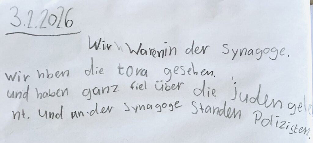 Die Robbenklasse hat im Rahmen des Religionsunterrichts die Synagoge besucht. Der spannende Ausflug wurde von den Kindern in einem Tagebucheintrag festgehalten.