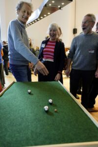 En ce bel après-midi de septembre, les membres de l’association franco-allemande (DFG) et Herbert Pistier du club de boules sportif (KfK) ont joué à la „pétanque“ – la version „loisirs“ du jeu de boules. Comme nous avions la visite de quelques Orléannais à l’ambition technique poussée, on aurait presque pu l’appeler „Jeu de boules“.