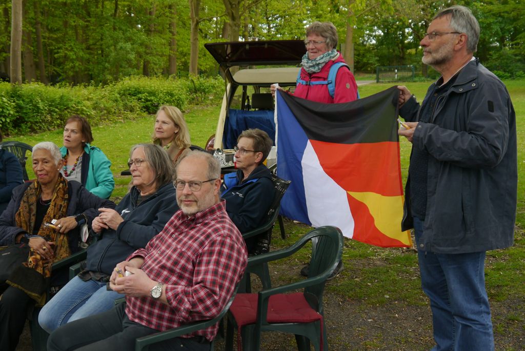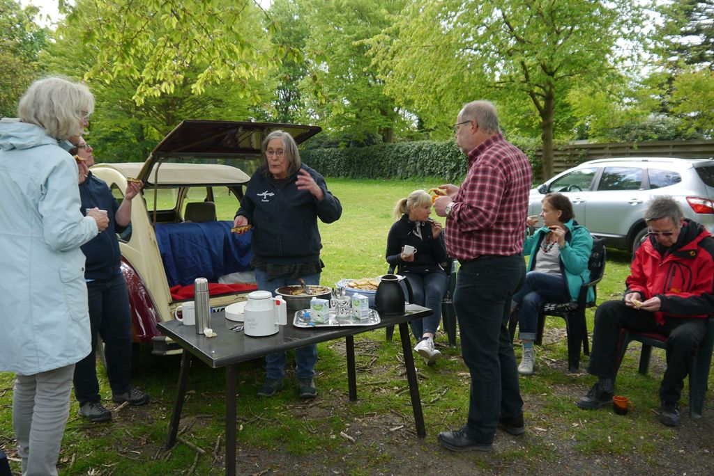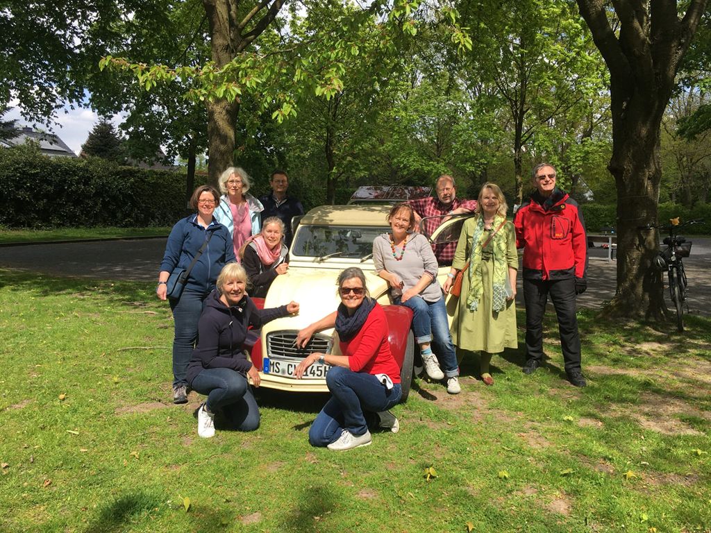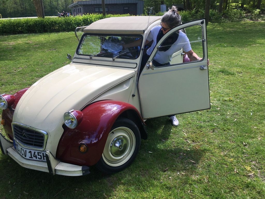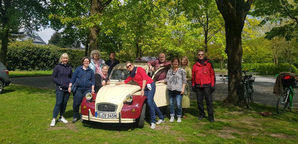 Der Oldtimer von Peter Aulenkamp sorgte für stilechtes Flair bei der Veranstaltung der Deutsch-Französischen Gesellschaft Münter. Aus dem Kofferraum gab es Kaffee und Kuchen nach der ersten Boulerunde.