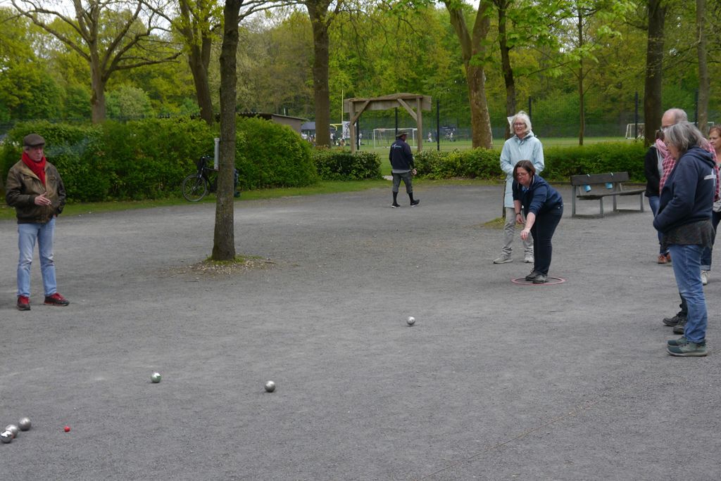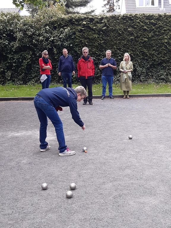 Natürlich waren nicht alle Anwesenden blutige Anfänger und die französischen Mitglieder hatten selbstverständlich ihre eigenen Kugeln mitgebracht, aber es gab auch verborgenen Talente, deren ‚Boulegefühl‘ von den ‚Profis‘ vom Nachbarfeld mit anerkennenden Kommentaren belegt wurden.