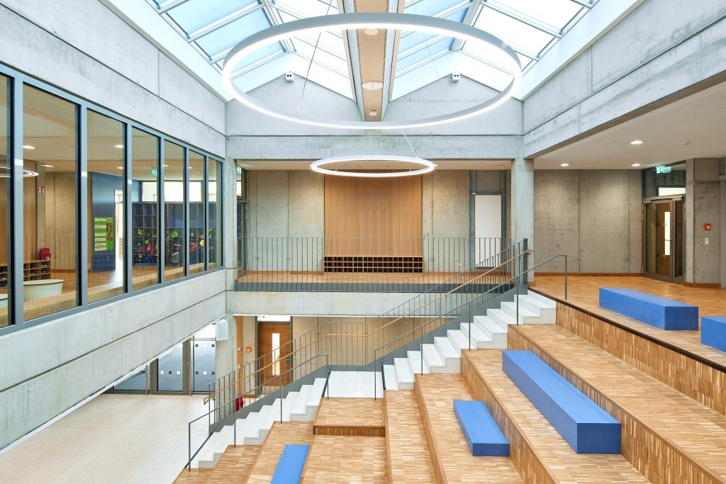 In unseren Lernclustern „Blau“, „Grün“ und „Gelb“ finden die Kinder vielfältige Räume zum Lernen: vom Lerngruppenraum über das Forum bis hin zu Fluren und flexibel nutzbaren Multifunktionsräumen. So schaffen wir eine vorbereitete Lernumgebung, die den Wechsel zwischen Einzelarbeit, Kleingruppenarbeit und gemeinsamen Lernphasen in der Lerngruppe ermöglicht.
