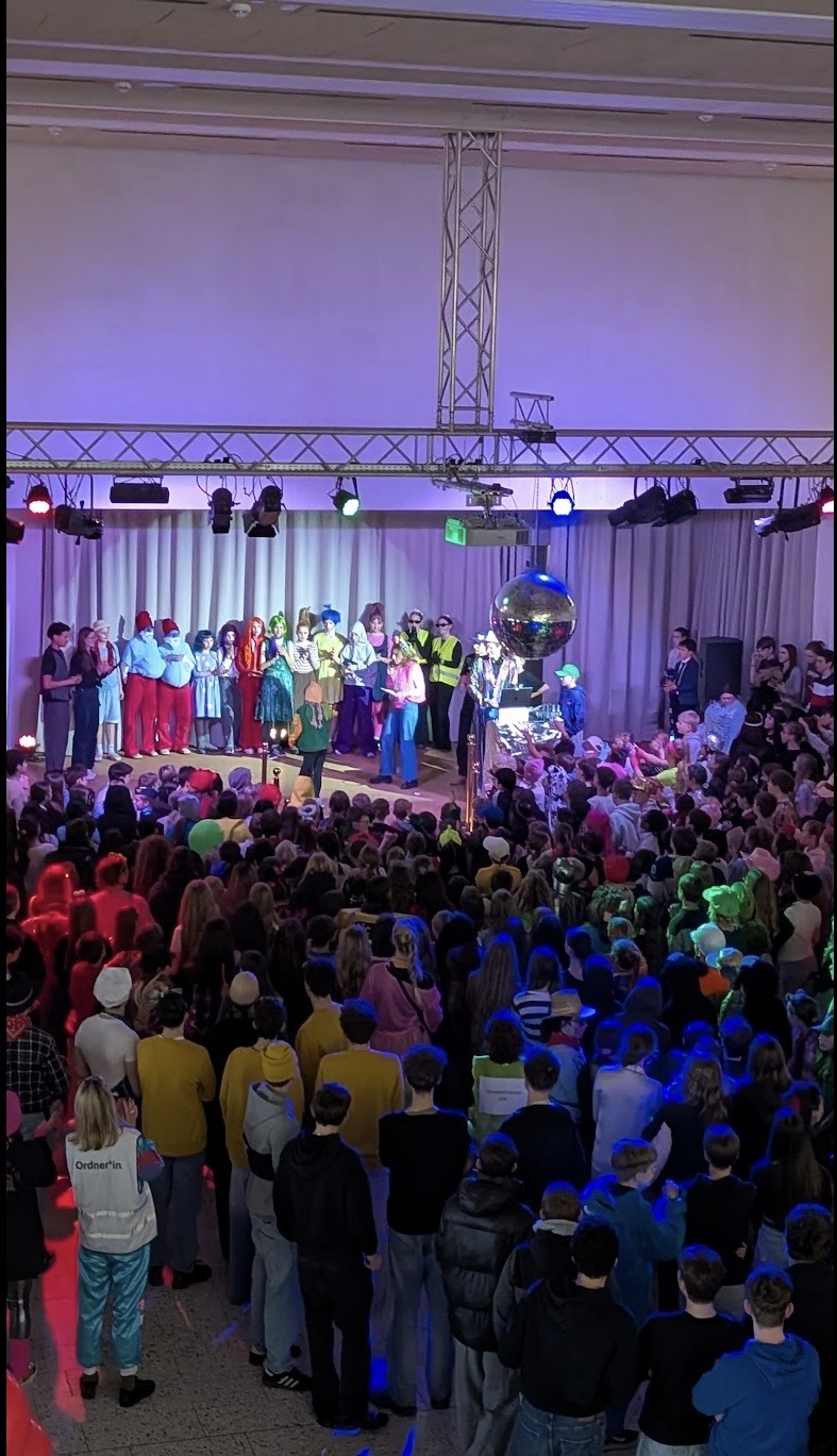 Wenn der Edding tanzt und Lehrer leuchten-Karneval an der MAG Mila und Fritzi, 11. März 202611. März 2026 Am 12. Februar hat hier an der MAG die diesjährige Karnevalsfeier stattgefunden. Es wurden wieder viele Stationen und Spiele angeboten, leckeres Essen bereitgestellt und kreative Kostüme angezogen. An den Stationen wie z.B Karaoke, Schokokusswettessen, Just Dance, Casino und vielen weiteren hatten die Schülerinnen und Schüler viel Spaß. Im Forum wurde die ganze Zeit laute Karnevalsmusik abgespielt zu der frei getanzt wurde. In den ersten vier Stunden hat regulärer Unterricht stattgefunden, in der fünften Stunde haben sich die SuS Kostüme angezogen, geschminkt und sich für die Feier vorbereitet. Außerdem wurde das beste Kostüm in der jeweiligen Klasse abgestimmt. Die Kinder mit den besten Kostümen haben sich im SV – Raum getroffen und dort hat es eine 2. Abstimmung gegeben. Letztendlich hat es aus jedem Jahrgang ein Kostüm auf den roten Teppich geschafft und wurde mit Applaus umjubelt. Die Kostüme, wie z.B. ein Edding, Schlümpfe und Achterbahnsitze wurden oft selber gemacht. Zum Mittagessen gab es Hotdogs in der Mensa, die genüsslich auf dem Schulhof verzerrt wurden. Danach konnte sich noch jeder einen Berliner zum Nachtisch abholen. Außerdem gab es ein Belohnungssystem, bei dem man sich nach vier Stationen, bei denen man war (pro Station ein Stempel), eine Waffel oder eine Popcorntüte holen konnte. Auch dieses Jahr hatten die Lehrerinnen und Lehrer wieder ein Motto fürs Verkleiden. Dieses Jahr hat war es „Neon“. Man hat knallige Pink, Blau, Grün und Gelb Töne gesehen. Die Karnevalsfeier war auch dieses Jahr ein voller Erfolg und uns persönlich hat es dieses Jahr sehr viel Spaß gemacht. Wir freuen uns schon auf das nächste Mal. MAGevents
